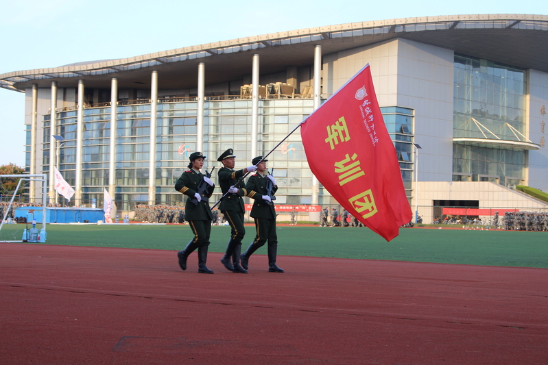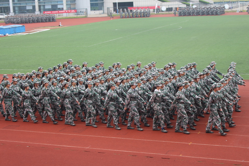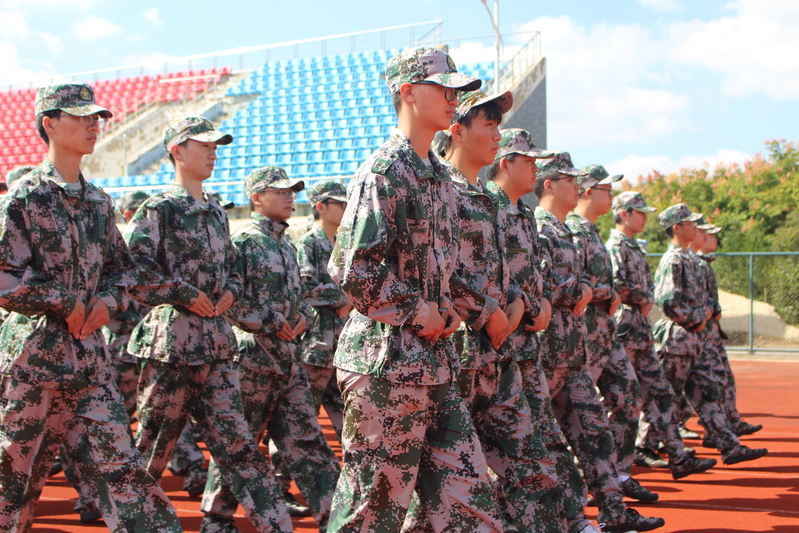 紧接着,同学们以方阵队列通过大会主席台,充分展示了他们为期14天刻苦训练的丰硕成果。首先在大家的注视下进行送军旗环节,掷地有声的正步,平整鲜艳的军装,现场氛围顿时严肃起来。随后,各方阵依次踏着正步经过主席台。药院学子精神振奋,正如他们喊的:扬帆把舵,奋力拼搏,盐师药院,气势磅礴。作为刚加入的“小药丸”,相信同学们一定会将团结拼搏精神传承下去,在今后的学习工作中也有这猛虎般的自信和魄力。最后,由男子拳术方阵和女子匕首操方阵向大家汇报表演,充满士气的口号,铿锵有力的动作,“男儿当自强”和“巾帼不让须眉”的精神在同学们身上闪闪发光。