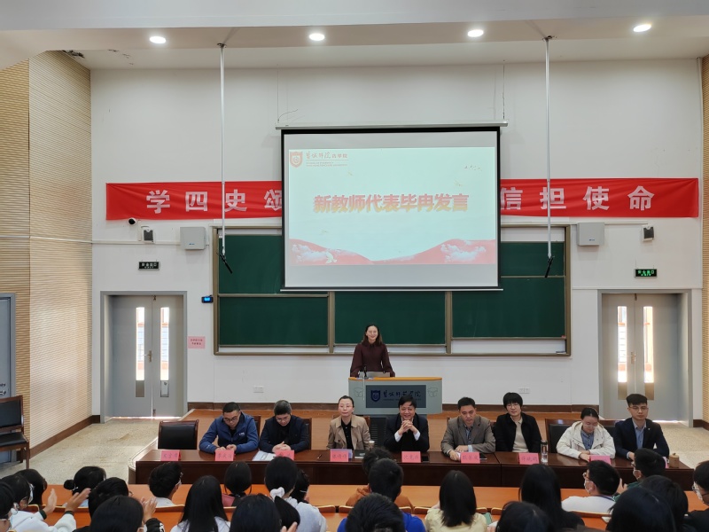 新教师代表毕冉向全体新同学分享自己的求学经历,她希望全体新生在学习和生活中,要沉得住气、吃得了苦;要把握当下、珍惜现在,肩负起新时代青年人的责任与担当。