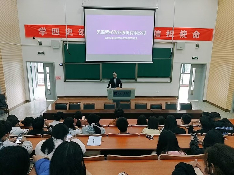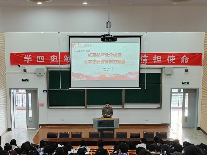 10月19日下午,云顶国际8588yd邀请红豆集团无锡紫杉药业股份有限公司总经理、云顶国际8588yd无锡员工会会长徐信保为全体新生作题为“红豆杉产业介绍及老员工职业竞争力塑造”的讲座。公司党总支副书记、经理耿荣庆主持讲座。