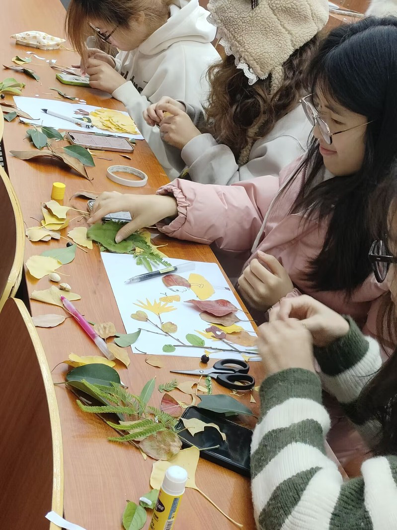 文字暖心,落叶传情。同学们走遍校园的各个角落,找寻自己眼里中最美的落叶,以落叶作为载体,创作出形式各异的作品。活动中,来自汉族、仡佬族、土家族等多个民族的同学依次上台展示自己的作品,用朴实真诚的话语讲述自己的创作灵感、分享自己的创作过程,说明自己在其中寄托的对冬日的展望、对家乡的思念的朴素情感。落叶虽小,却承载着属于每位同学的温暖与美好,多样的设计也为这个冬天增添了一分暖意。