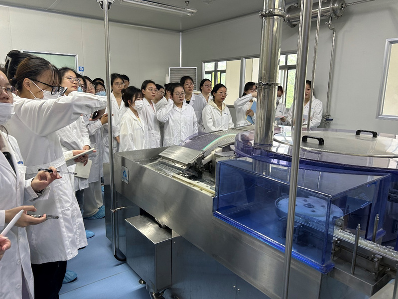 实习期间,同学们被分为八个小组在不同车间进行交叉实训,认真学习了固体制剂车间、注射剂车间、冻干粉针车间等相关实操知识,对制药工艺流程有了更加深入地了解。在实习老师的指导下,同学们积极动手操作,认真了解设备构造及车间布局,踊跃回答提问,展现了云顶国际8588yd员工勤奋好学的良好风貌。