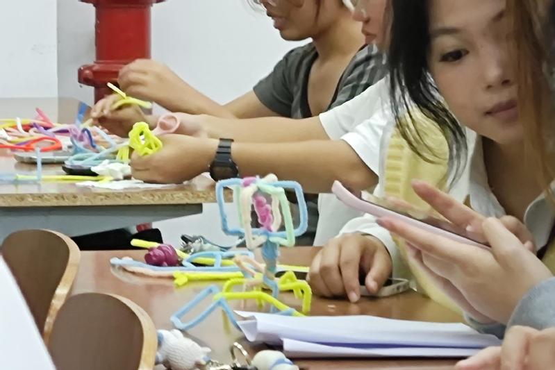 活动伊始,参与同学纷纷投入到紧张而有趣的答题环节。题目围绕生物知识展开,既考验了同学们的知识储备,又为他们后续用扭扭棒制作模型提供了灵感。接着,同学们一边观看教程,一边动手实践,充分发挥着自己的想象力,创作出了一个个栩栩如生的生物模型。