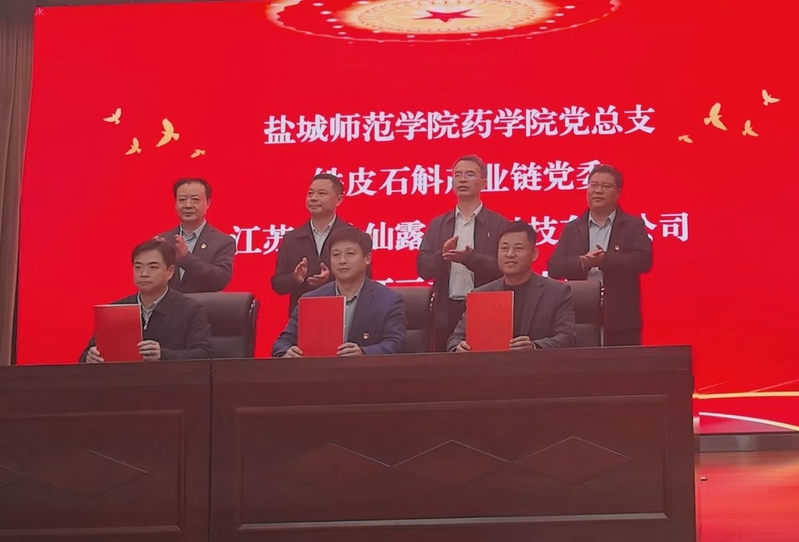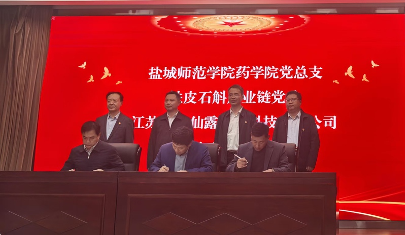为深入贯彻习近平总书记关于“江苏要在强链补链延链上展现新作为”的重大要求,深入贯彻落实省委组织部、省委教育工委关于开展“高校对接产业链党组织”行动的要求,11月5日,盐城师范公司党委副书记于建江,党委常委、组织部部长岳峰,公司党总支书记章春杰,党总支副书记、经理耿荣庆等赴响水开展“高校对接产业链党组织”行动。响水县委副书记、省委驻响乡村振兴工作队队长冯树春,县人大常委会党组副书记、副主任张孝将,响水县黄圩镇党委书记、响水县铁皮石斛产业链党委书记吴恒杰,江苏云响仙露生物科技有限公司总经理吉广尚等出席本次活动。