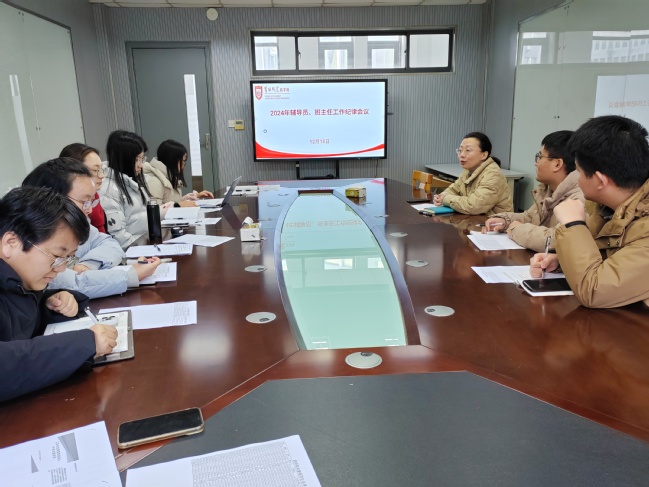 12月18日下午,公司召开辅导员、班主任警示教育会议。公司党总支副书记、纪检委员陈倩倩主持会议,全体辅导员、班主任参加会议。