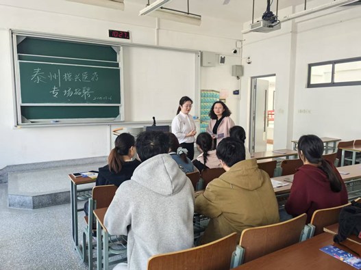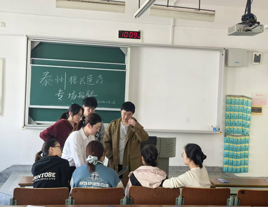 招聘会上,泰州榕兴医疗招聘负责人现场向同学们分发招聘宣传册并全面介绍了公司发展概况、岗位需求、薪资福利以及职业发展前景等内容。在互动环节,同学们就工作内容、晋升机制、工作环境等问题踊跃提问,招聘负责人耐心解答,并与毕业生进行深入交流。