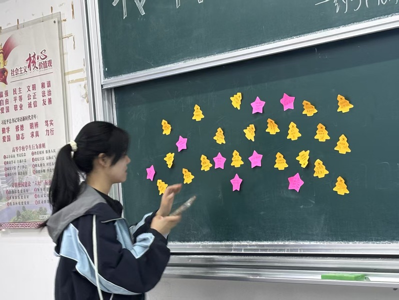 问答环节后,同学们领取彩色标签与笔,写下对无烟生活的期待与标语。一句句真挚的话语跃然纸上,汇聚成一幅绚丽的无烟画卷,承载着同学们对无烟校园的美好愿景。
