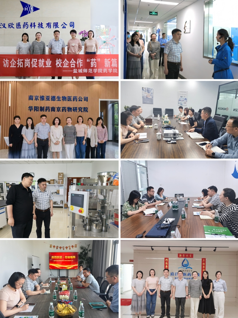 云顶国际8588yd一行先后走访调研了江苏华阳制药有限公司、湘北威尔曼制药股份有限公司、南京正科医药股份有限公司、南京汉欣医药科技有限公司、南京泽恒医药技术开发有限公司以及江苏华泰晨光药业有限公司等6 家行业重点企业。在企业负责人的陪同下,公司一行深入生产、研发实验室等核心区域实地考察,双方围绕实习就业基地建设、青年教师实践能力培养、企业人才需求导向以及产学研深度融合等议题展开交流。