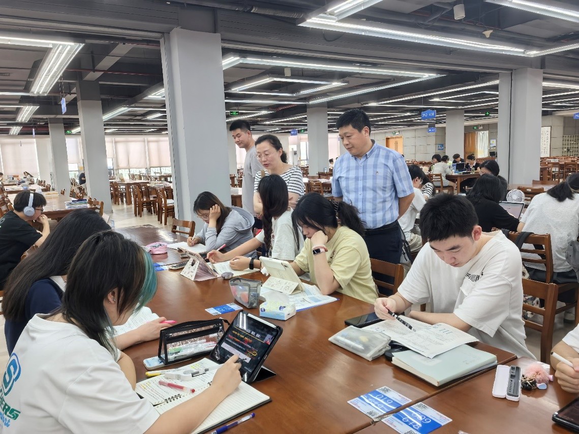 三伏酷暑,热浪蒸腾。为深入了解公司暑期留校备考员工的思想动态、学习进展和生活状况,切实做细做实服务保障工作,7月22日正值大暑节气,公司党总支书记章春杰,党总支副书记陈倩倩,副经理许晓娟以及全体毕业班班主任,一同前往公司新长校区图书馆,亲切看望2022级考研学子。