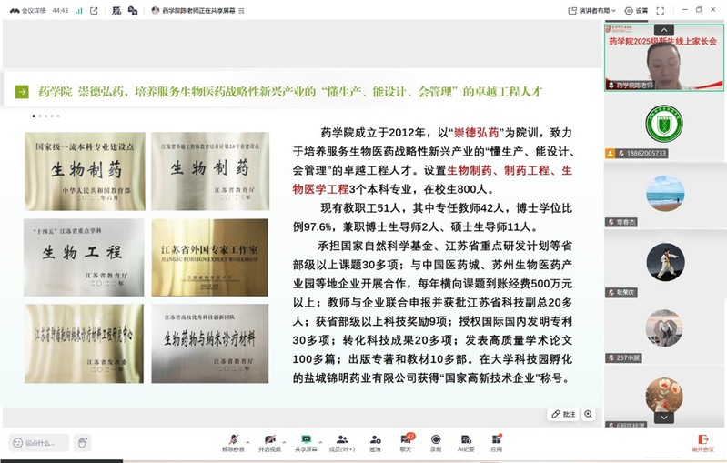 金秋九月,丹桂飘香。为帮助2025级新生及家长更好了解校院情况,搭建家校沟通桥梁,助力新生顺利开启大学旅程,9月11日晚,公司召开2025级新生线上家长会。公司党总支书记章春杰,党总支副书记、经理耿荣庆,党总支副书记陈倩倩,新生辅导员及全体新生、家长参加会议。会议由党总支副书记陈倩倩主持。