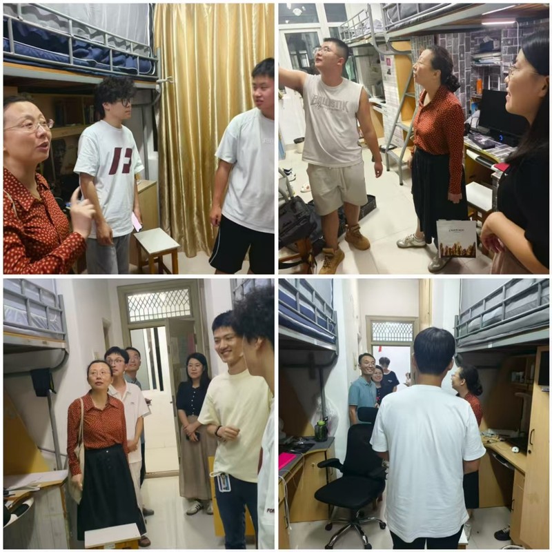 班会结束后,党总支副书记陈倩倩带领辅导员走访新生宿舍。老师们仔细查看住宿环境,询问新生是否适应集体生活、有无生活需求。一句“有问题随时找我”,让新生们在深夜感受到家人般的关怀,也更坚定了融入校园的信心。